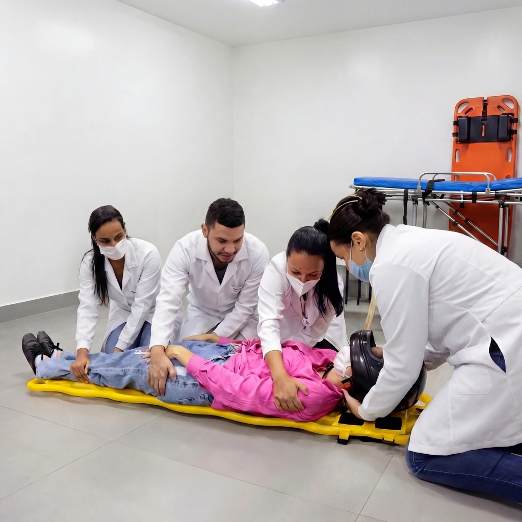 Treine cenários críticos com equipamentos hospitalares reais e ambientes que replicam a pressão da UTI e da emergência, reduzindo a insegurança e acelerando o preparo prático.